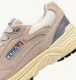 La tige se distingue par l’association de deux matériaux. Le mesh, léger et respirant, assure le confort, tandis que le suede complète le design avec une finition sophistiquée rappelant l’esthétique vintage.