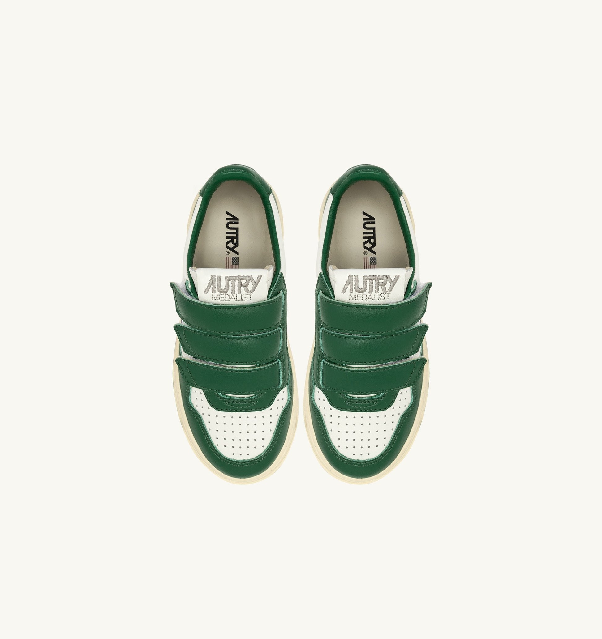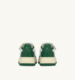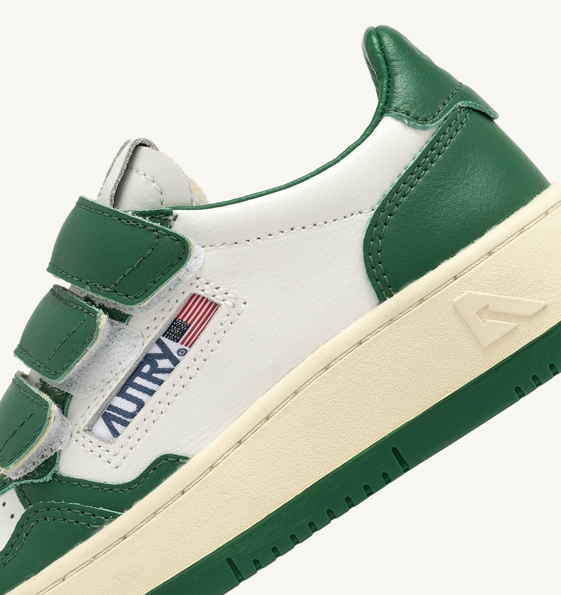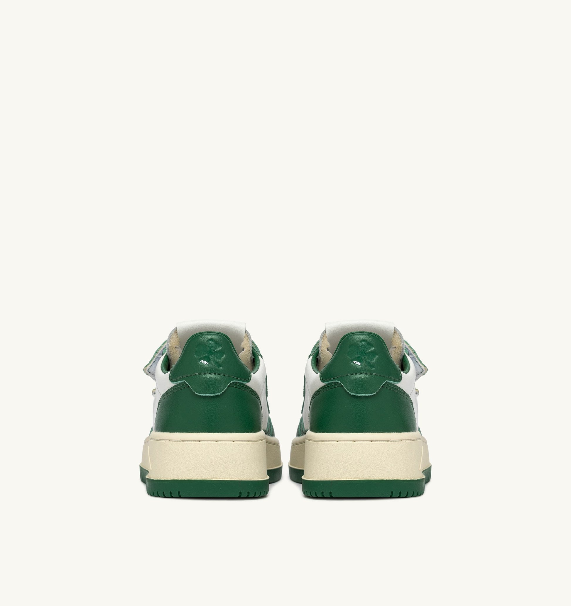 Realizzate in pelle in un mix di bianco e verde, poggiano su una comoda suola in gomma e si distinguono per i dettagli logati tipici di Autry.