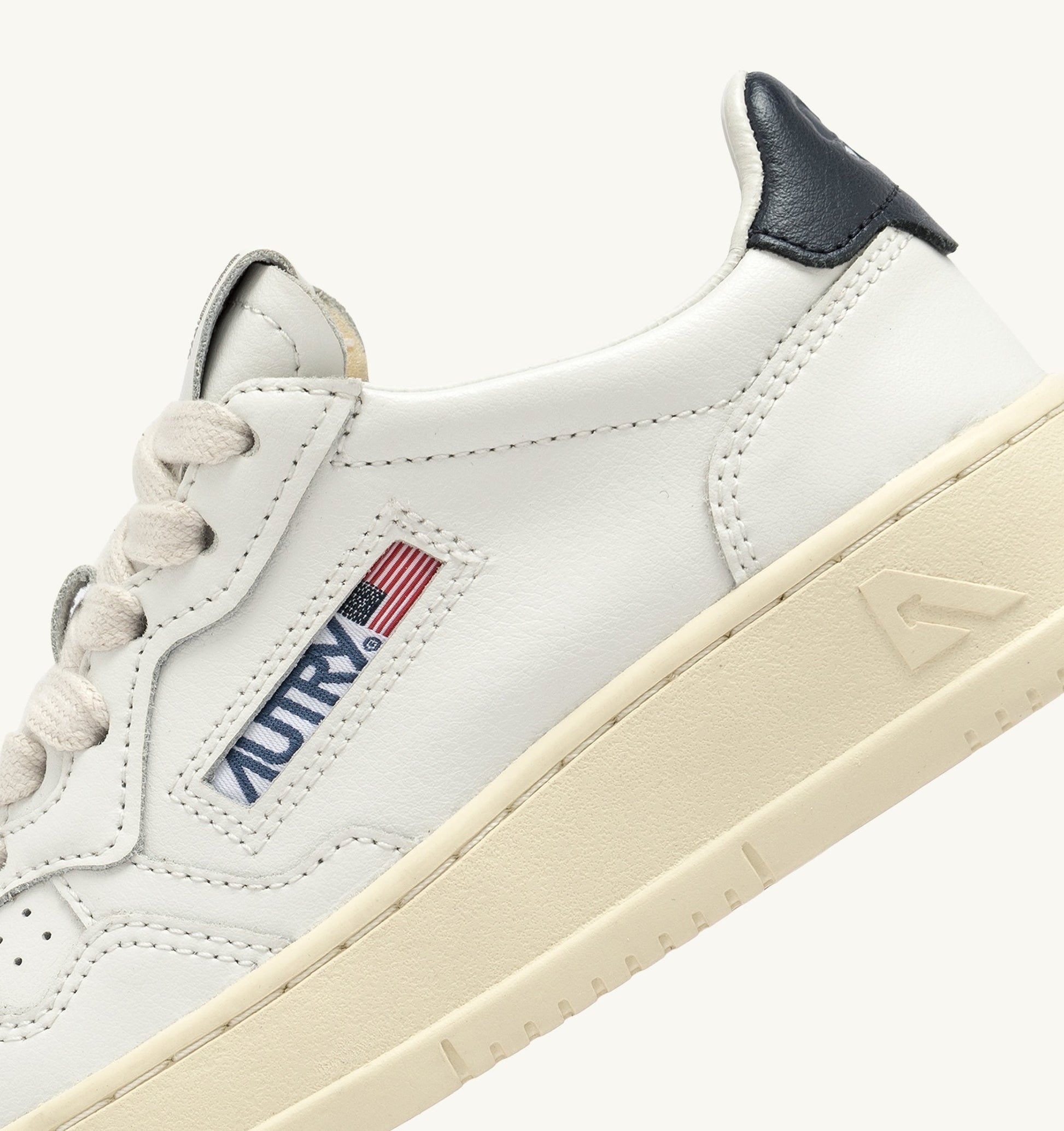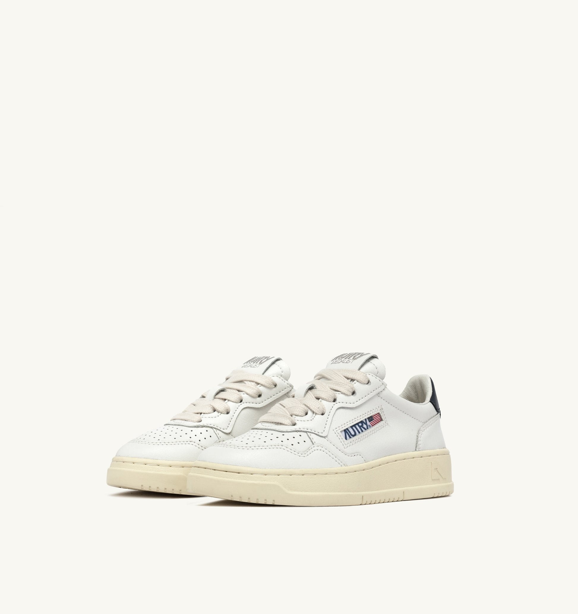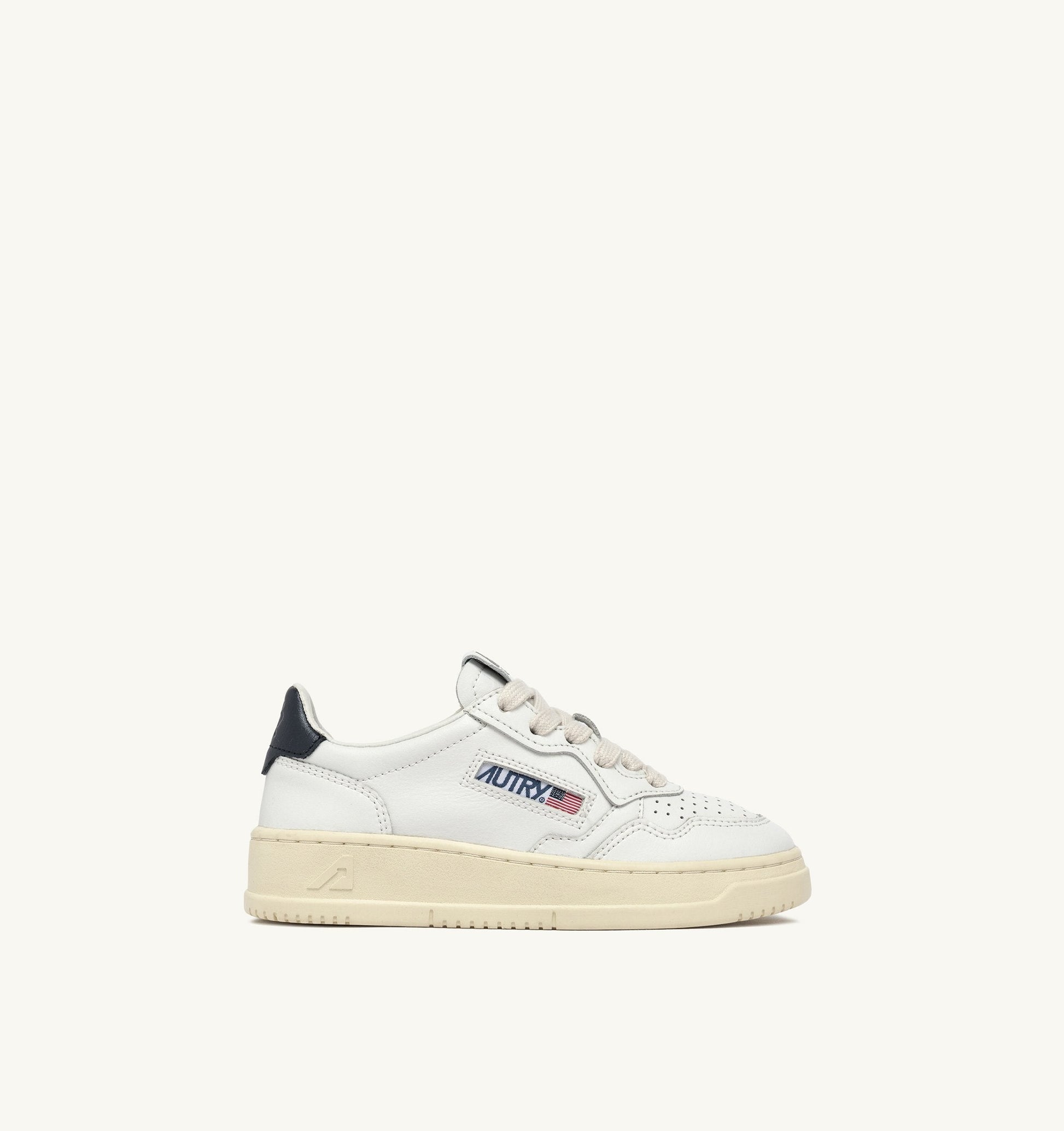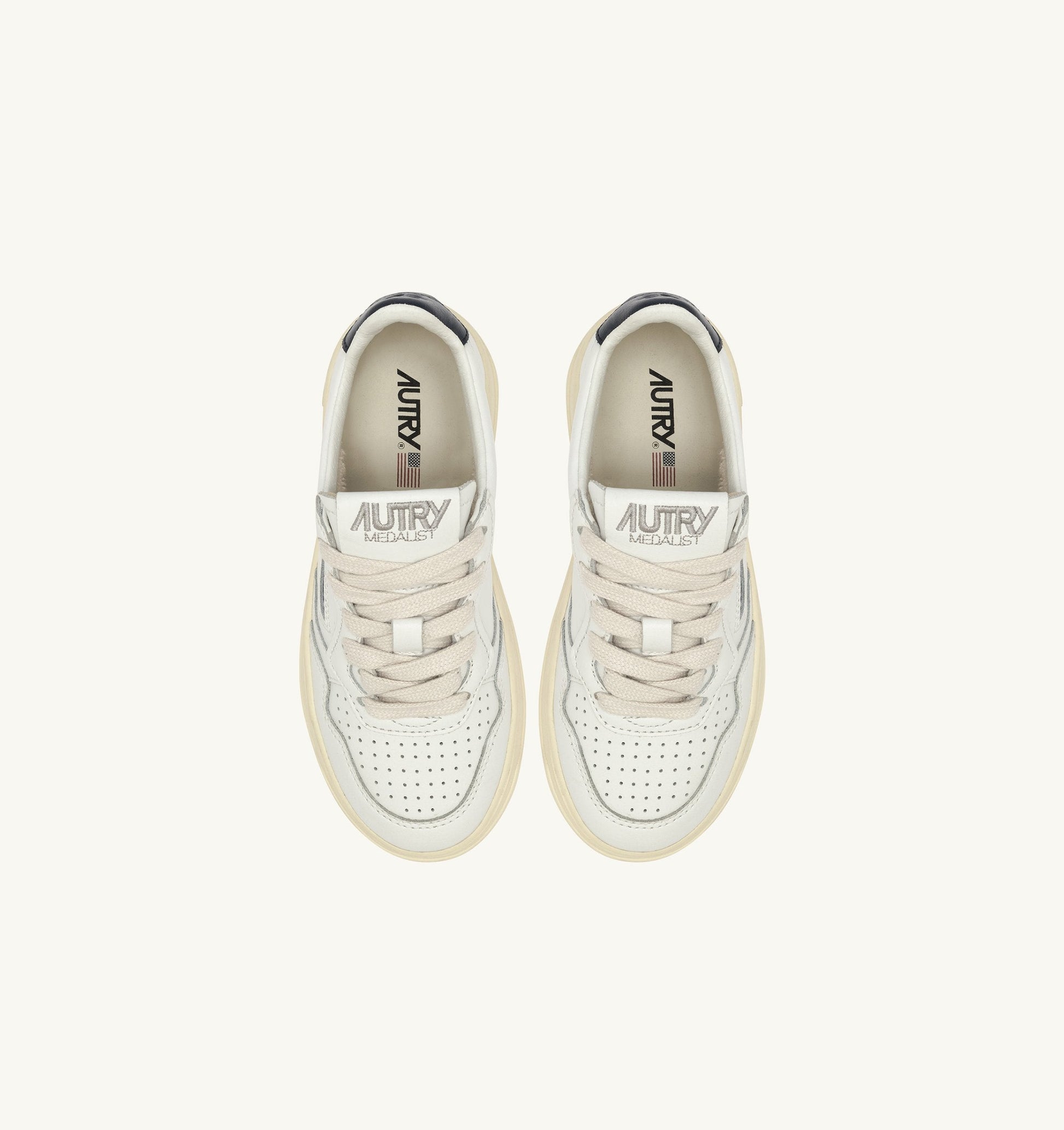 Interprétation mini-me de l’iconique Medalist, cette sneaker pour enfant arbore une tige souple en cuir blanc soulignée de détails bleu, reposant sur une semelle en caoutchouc particulièrement confortable et flexible.
