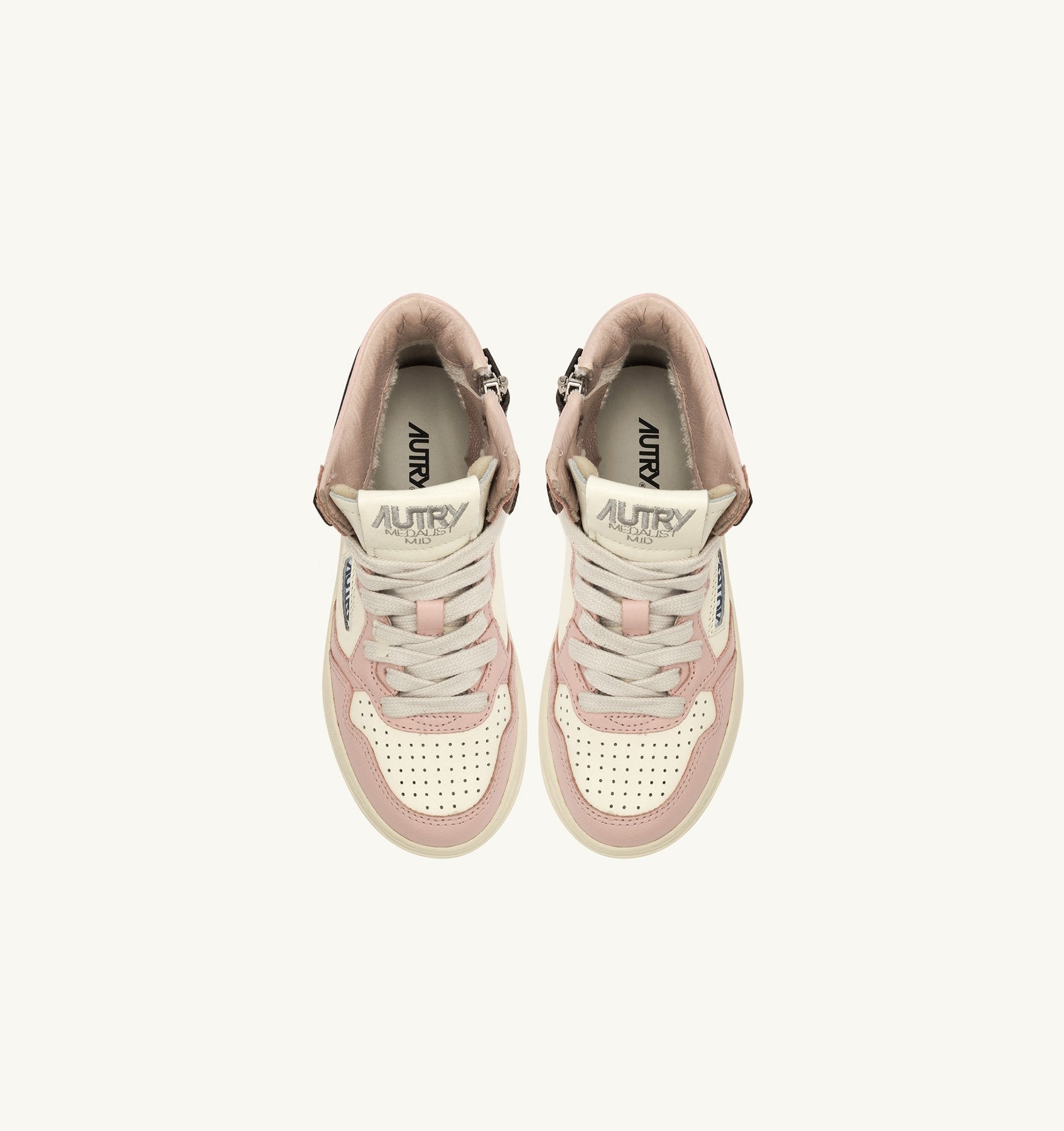 Medalist Kids Mid en cuir Blanc/Marron/Rose Poudré