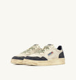 L’expertise artisanale italienne et la créativité d’Autry s’unissent pour sublimer le style de la sneakers Medalist Super Vintage. Chaque modèle se distingue par des interventions audacieuses « distressed » qui confèrent à cette chaussure de sport pour homme un look absolument unique. Elle est fabriquée en cuir blanc, agrémentée d’empiècements en suede bleu foncé et d’un talon en cuir métallisé argenté avec logo embossé.