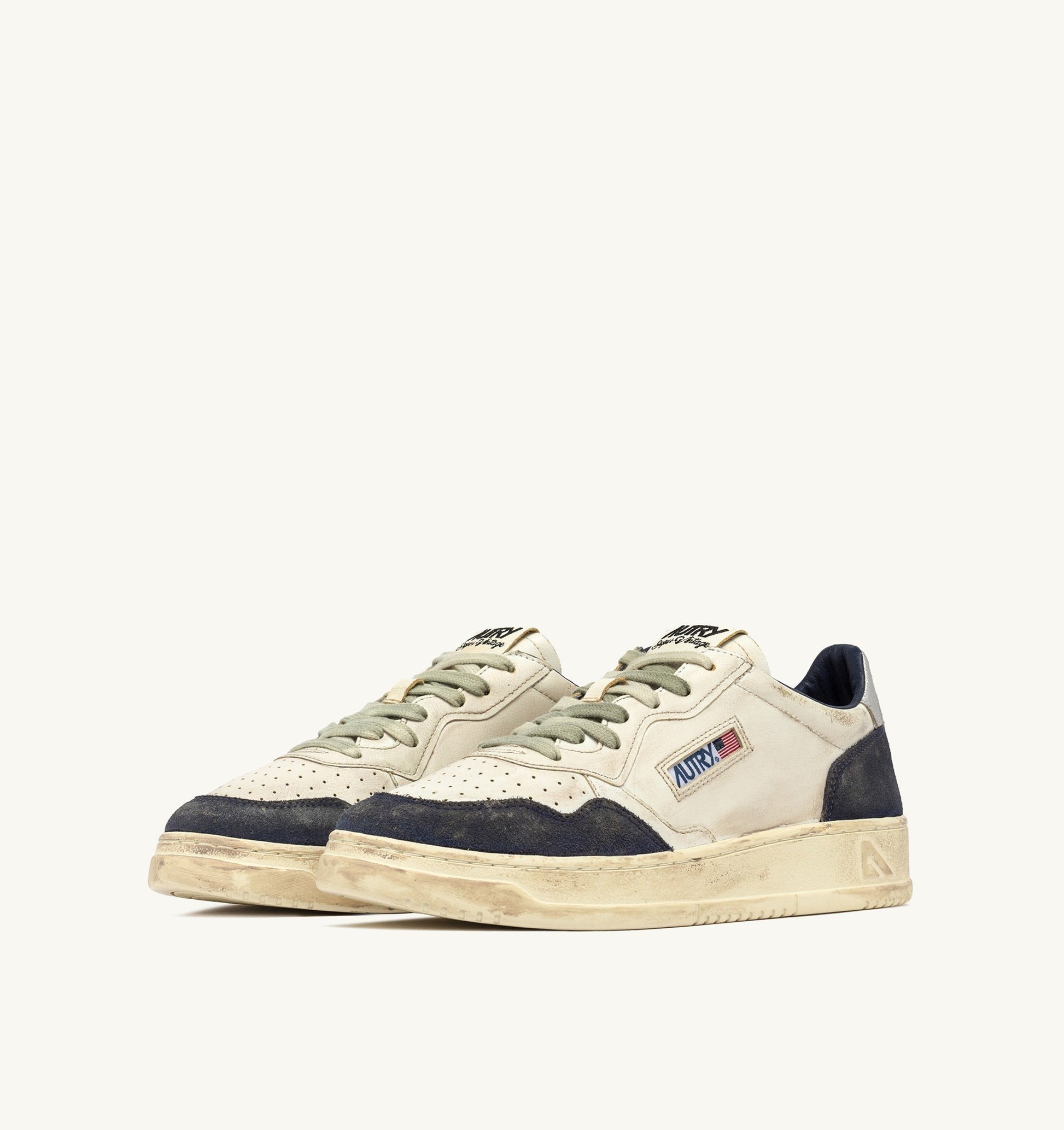 La finition effet boue (mud) enrichit à la fois la tige et la semelle. Le modèle est complété par un col rembourré, une pointe micro-perforée et le détail latéral avec le logo Autry.