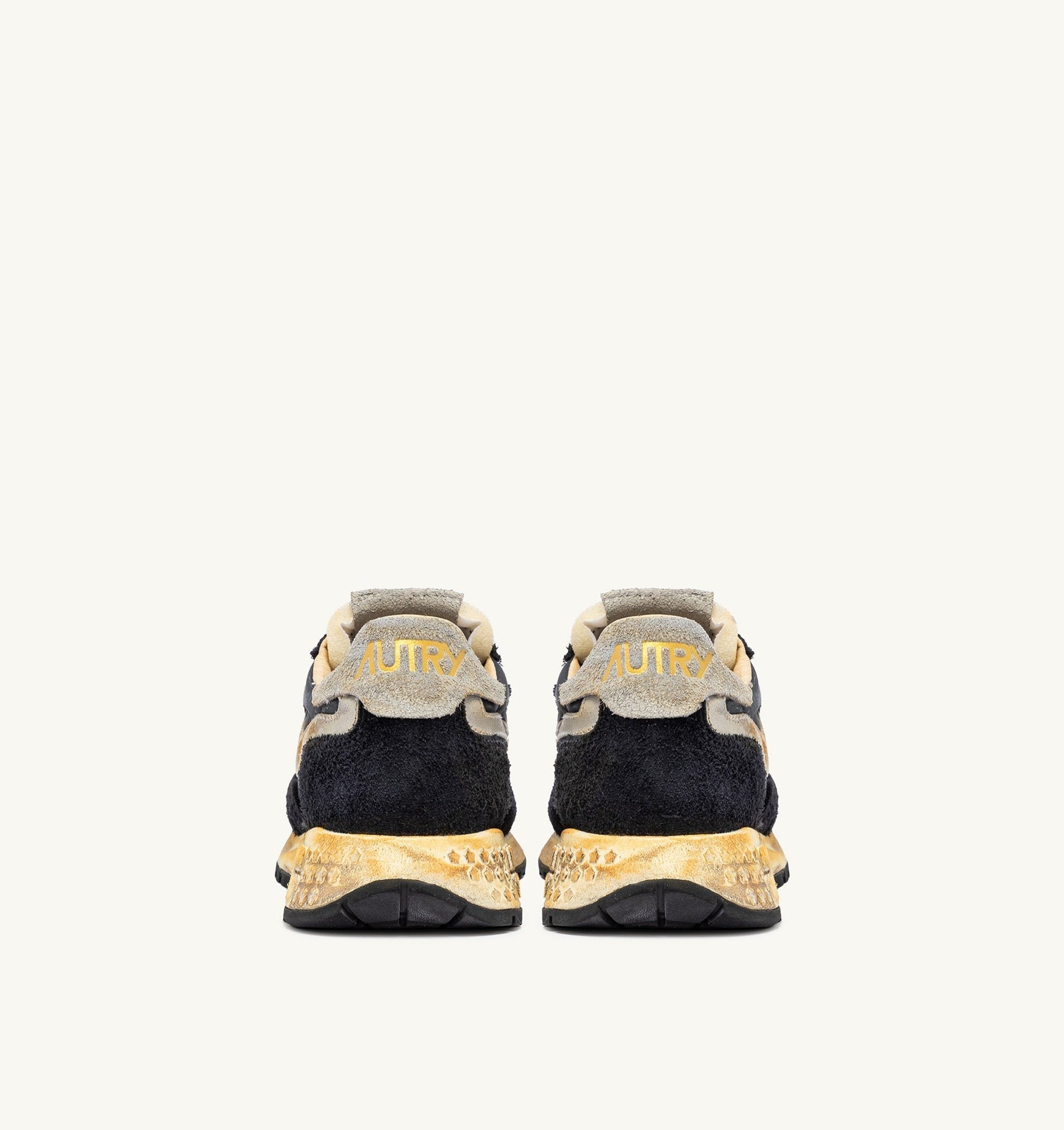 Innovante, légère et extrêmement flexible, la Reelwind Super Vintage s’inspire de l’univers running, sublimée par des traitements artisanaux qui créent un effet used irrégulier et unique à chaque modèle. Ce modèle homme est confectionné dans un mélange de suede long hair et nylon noir, avec des empiècements en cuir craquelé gris sur les côtés.