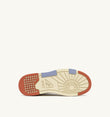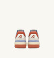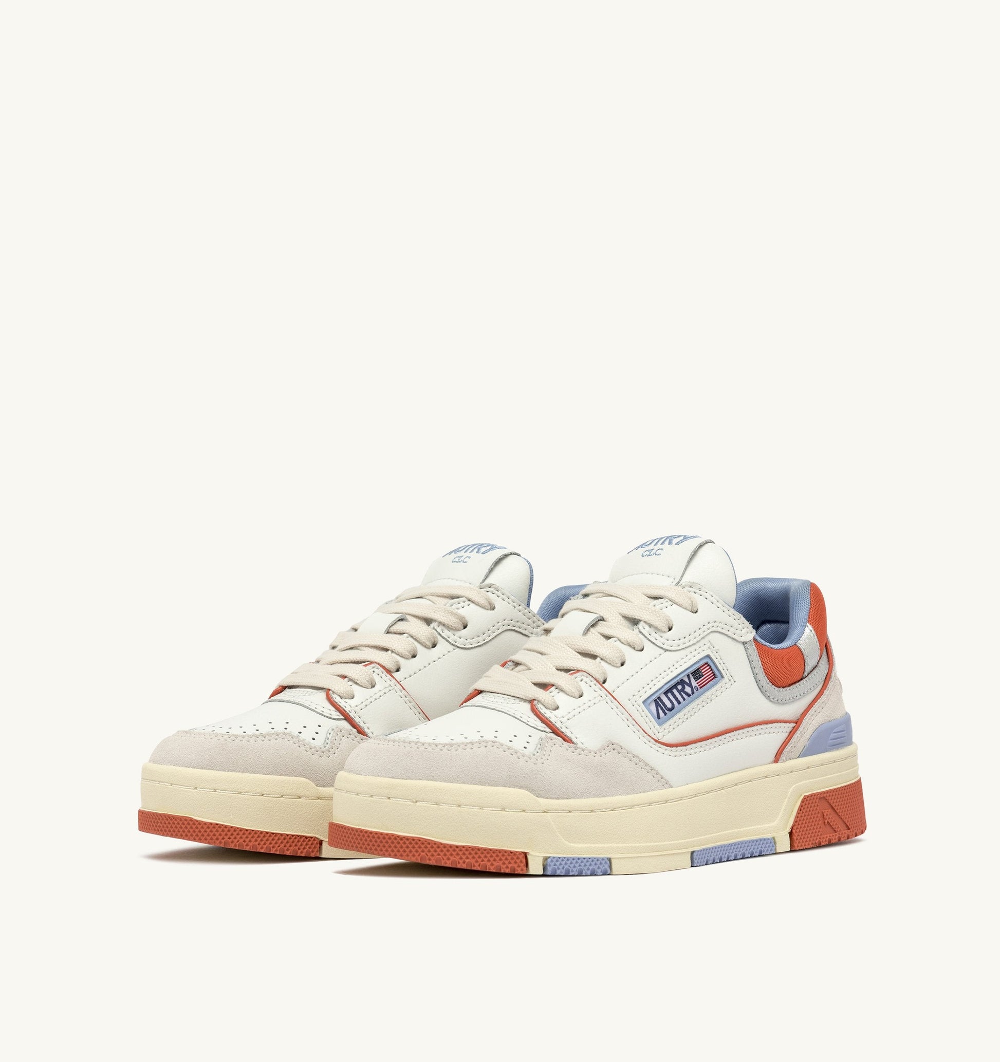Son élément distinctif est la semelle épaisse en caoutchouc avec une semelle extérieure en relief alternant blanc et orange, qui accentue l’énergie street du design.