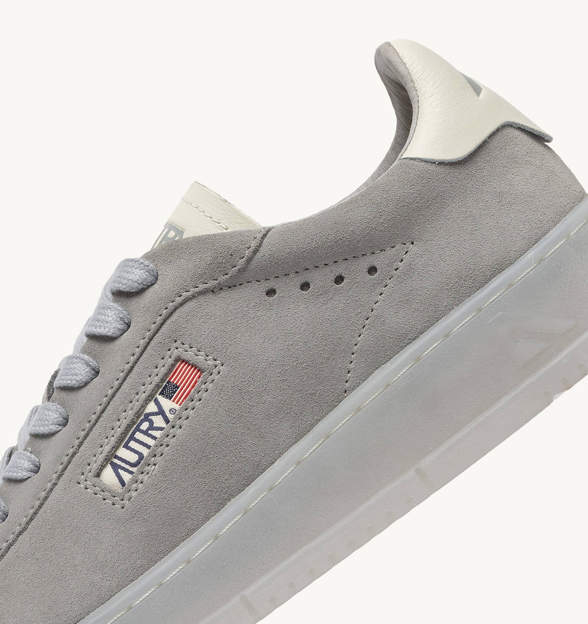 La tige est réalisée en suede doux à l’aspect naturel, avec un empiècement au talon en cuir blanc et le logo Autry embossé en gris, apportant une touche authentique. Le logo latéral signature complète le design avec style.