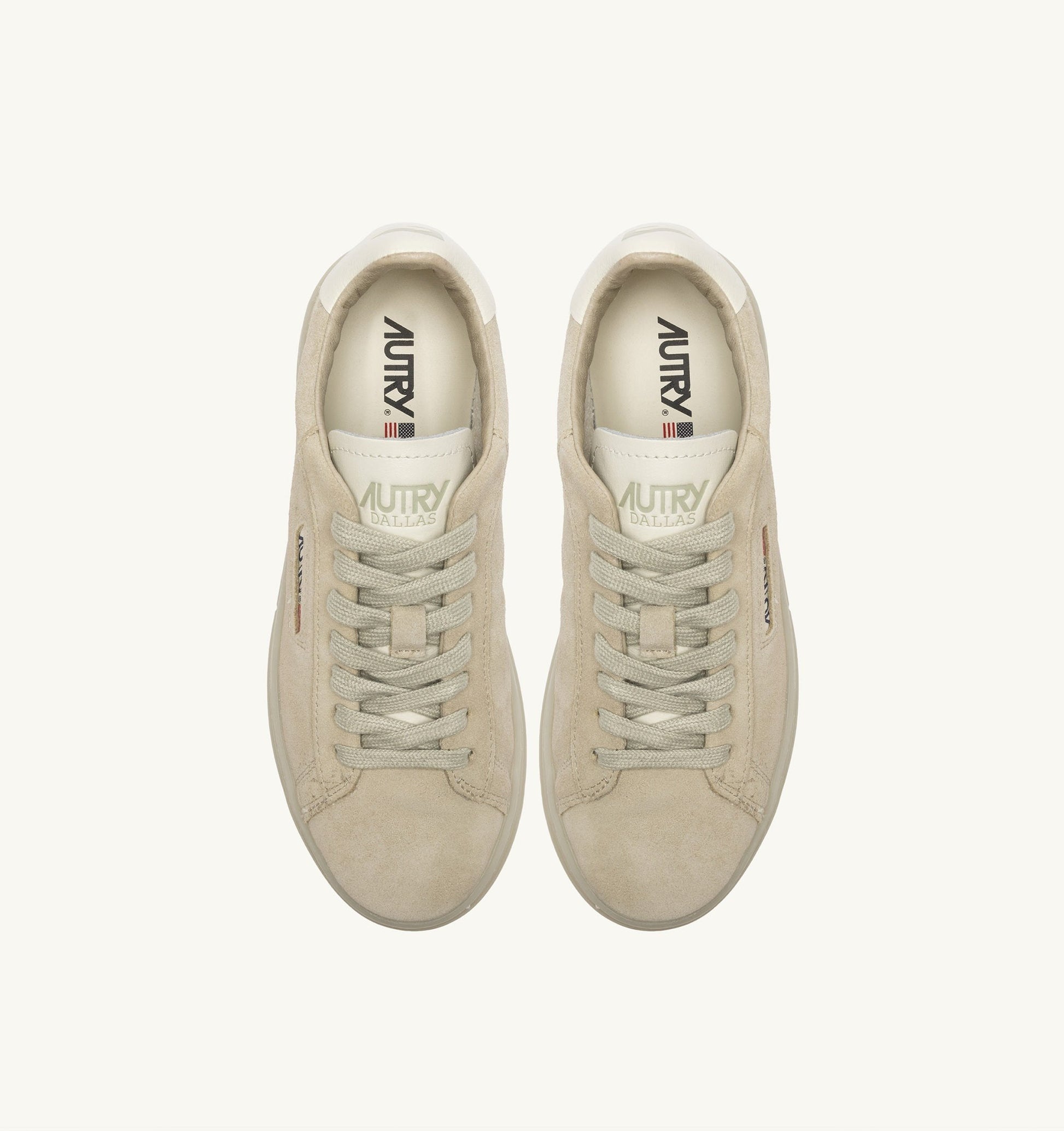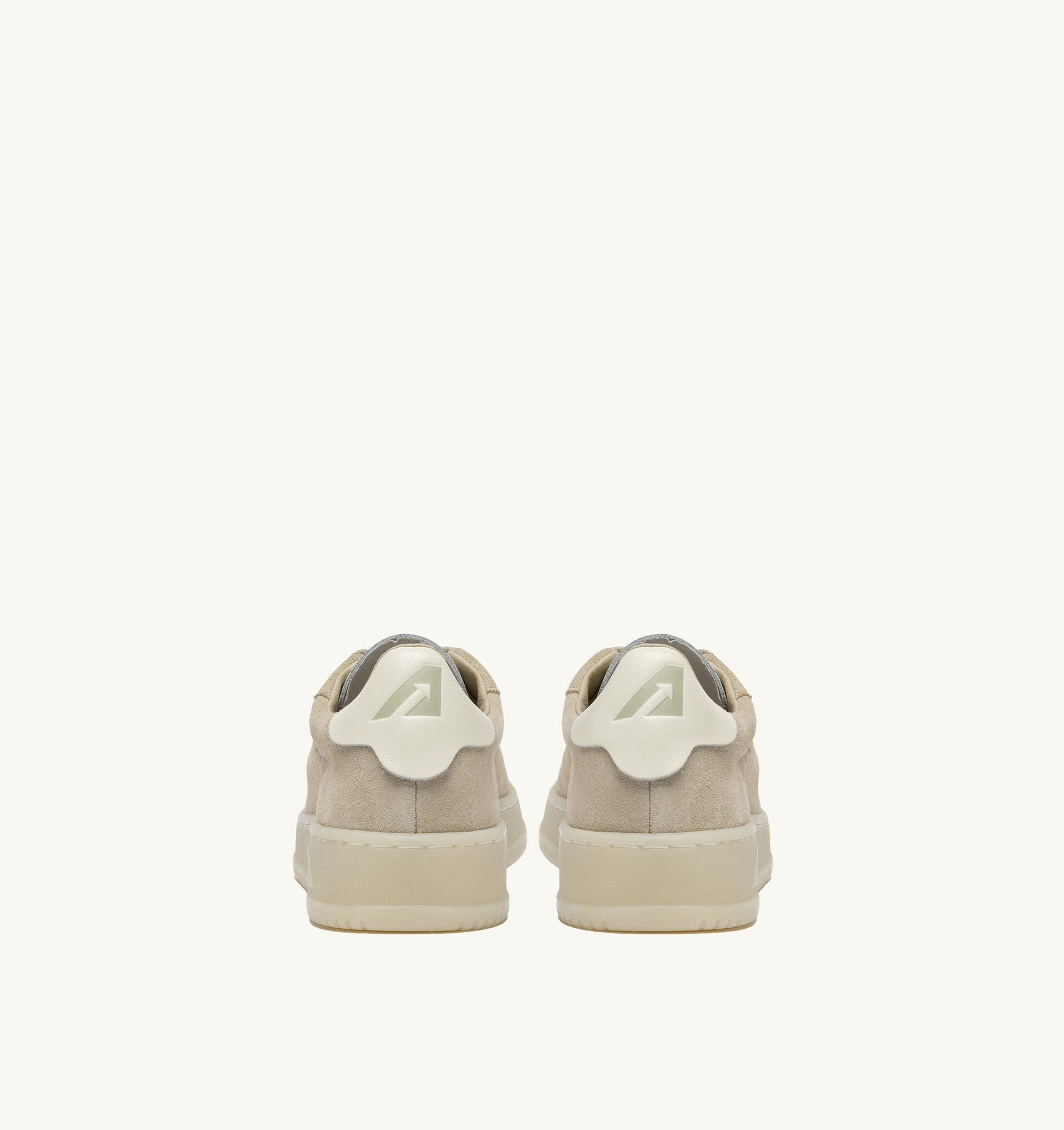 La tige est réalisée en suede doux à l’aspect brut, rehaussée d’un empiècement arrière en cuir blanc avec logo Autry embossé en beige, pour un look à la fois authentique et raffiné. Le logo latéral complète la silhouette avec justesse.