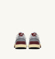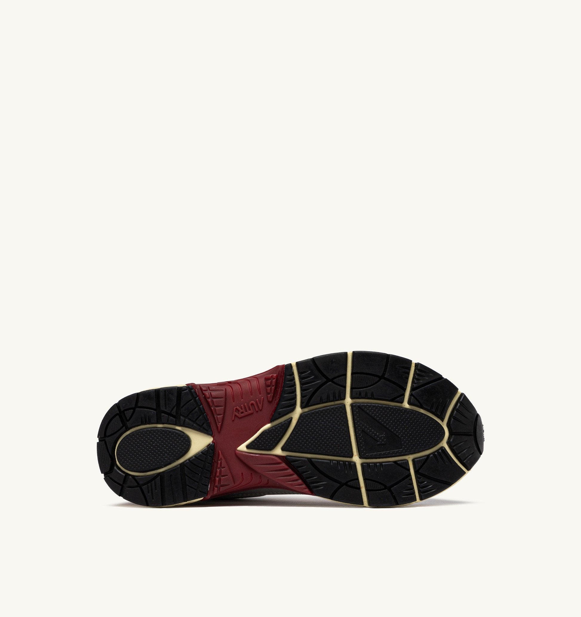 La tige se distingue par l’association de trois matériaux. Le mesh, léger et respirant, assure un confort optimal, tandis que le cuir de chèvre, réputé pour sa douceur et sa résistance, apporte durabilité et une touche de raffinement. L’ajout du cuir laminé introduit un détail de style sophistiqué et moderne.