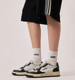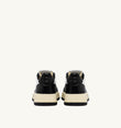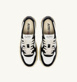 Cette sneaker pour femme est confectionnée en cuir blanc et agrémentée d’empiècements noirs qui apportent une touche graphique forte et affirmée.