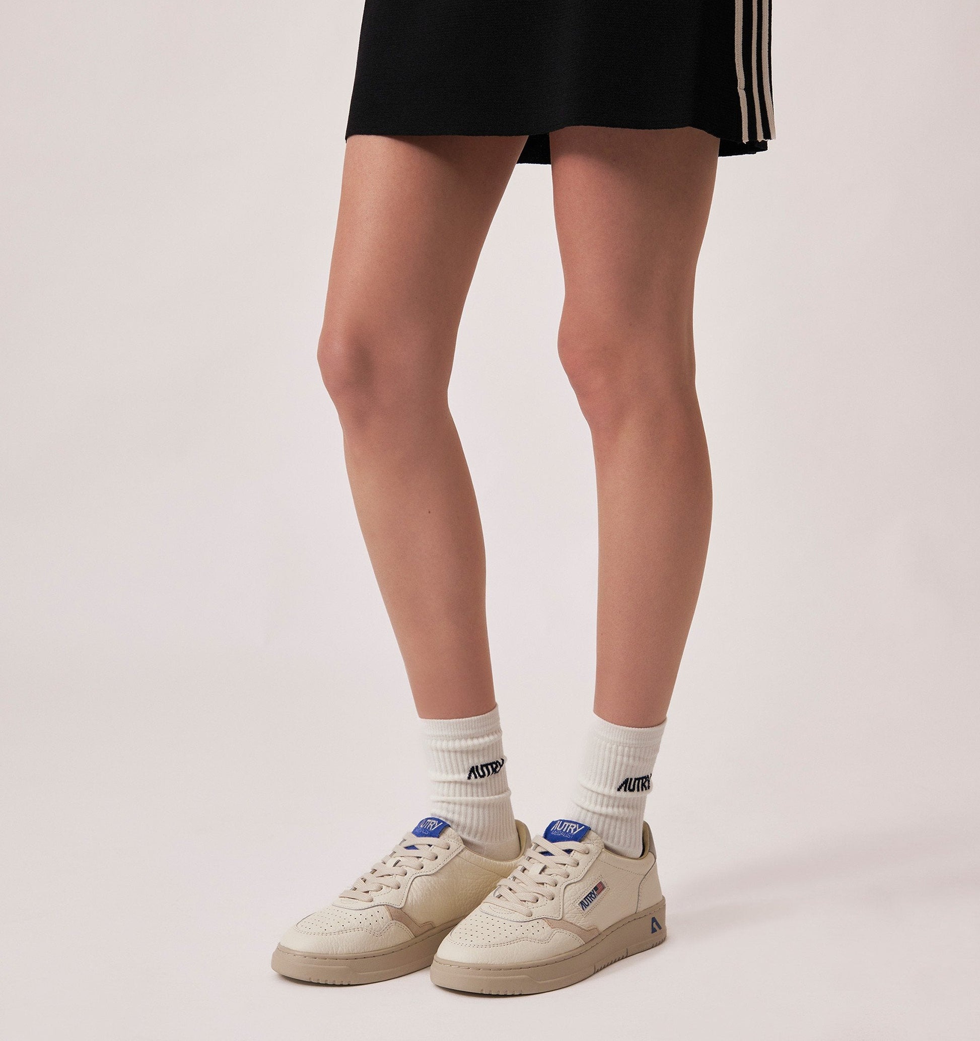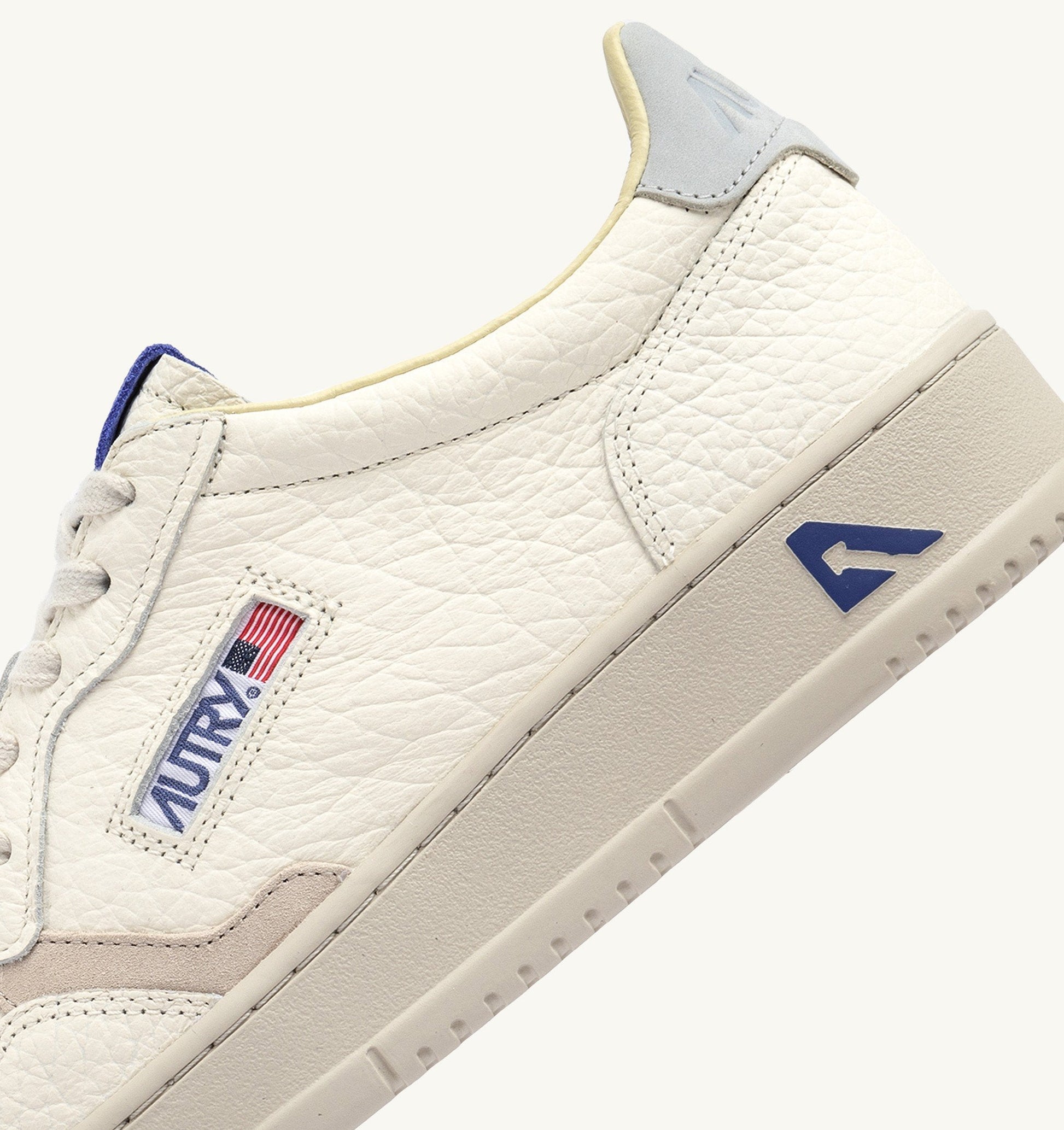 Cette chaussure de sport pour femme est réalisée en cuir à grain naturel, offrant un aspect unique et une douceur exceptionnelle, avec de petits détails latéraux en suede et une finition avec des micro-perforations sur la pointe pour une excellente respirabilité. Le détail en nubuck avec logo au talon, l’empiècement latéral avec logo Autry et la semelle ton sur ton personnalisent le look.