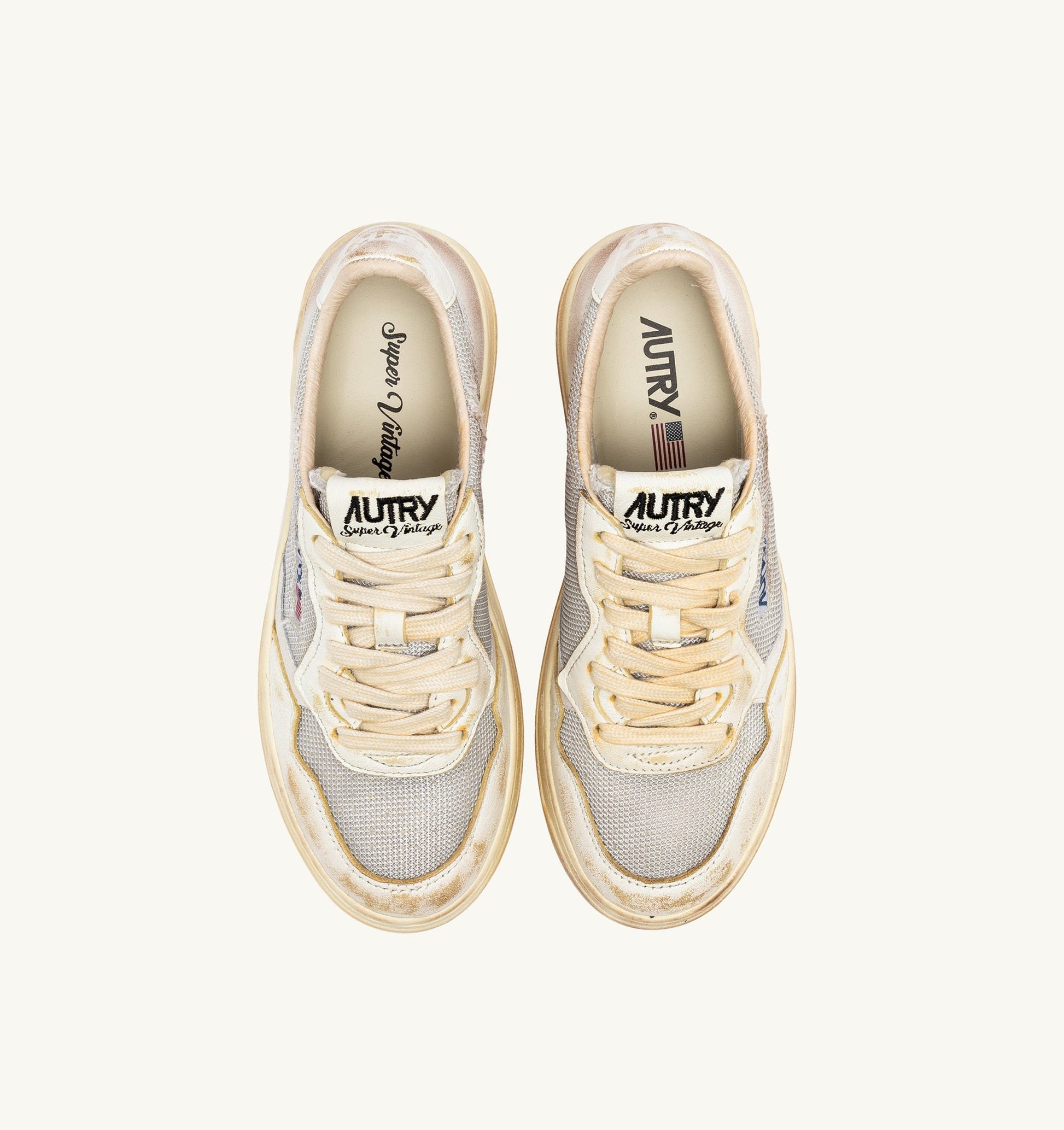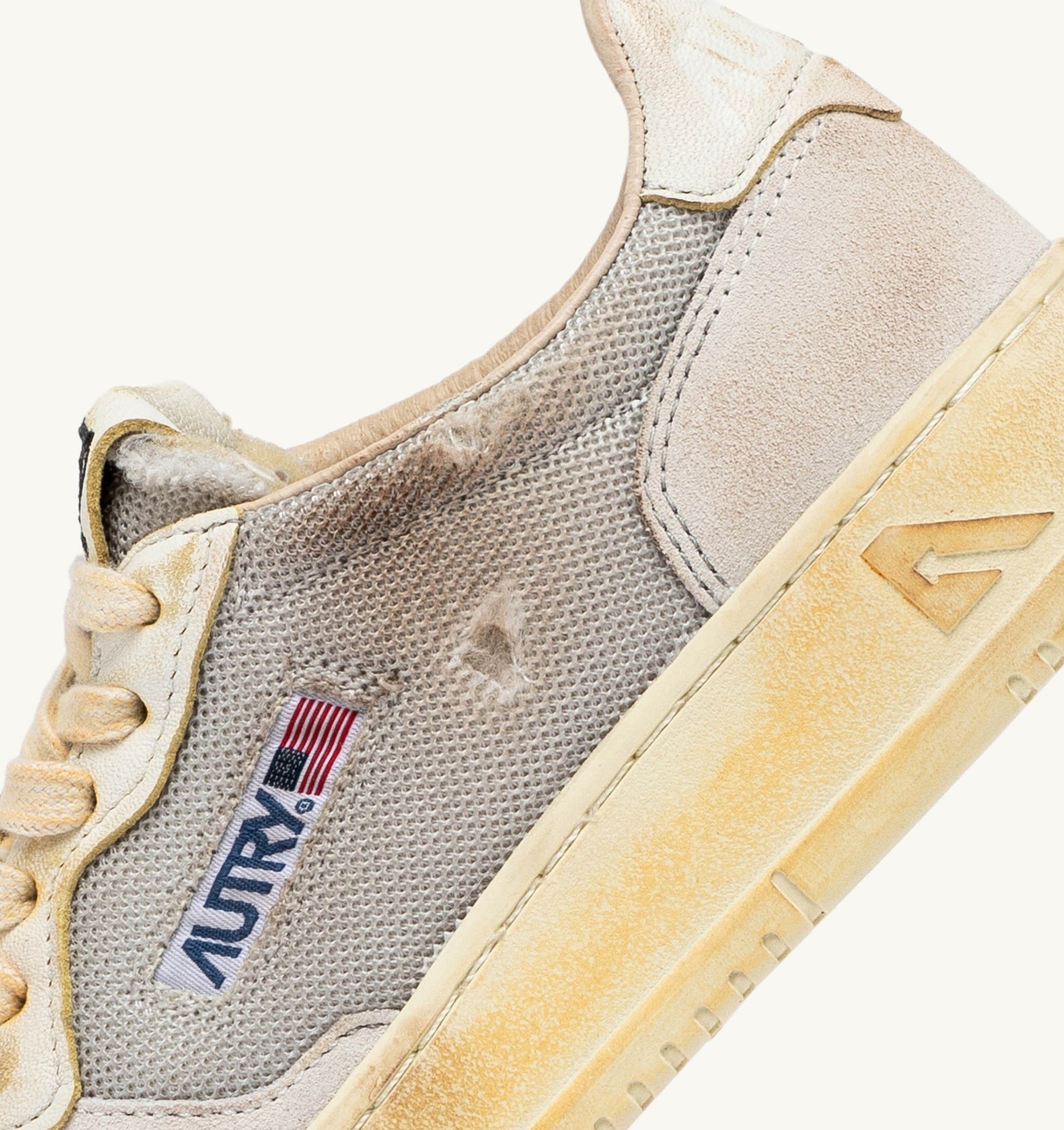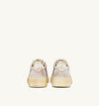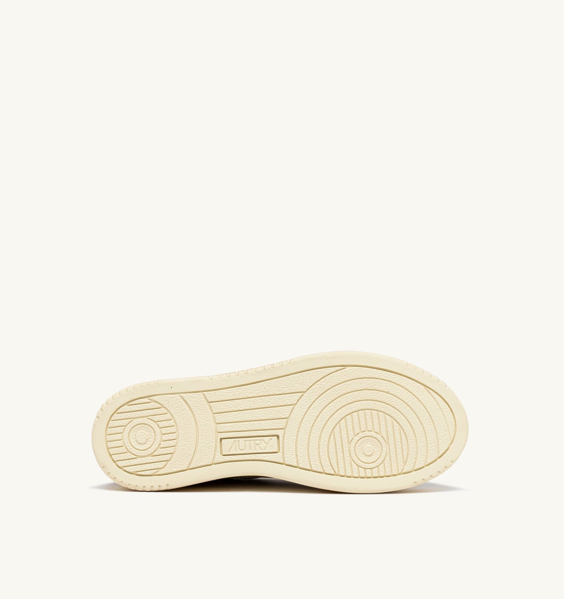 Cette basket femme est réalisée en mesh gris au look vieilli avec des inserts en cuir de chèvre et en suede dans des tons blancs. L’empiècement latéral attire le regard avec le logo caractéristique Autry. Le traitement exclusif utilisé pour créer cet effet vintage est entièrement fabriqué en Italie.