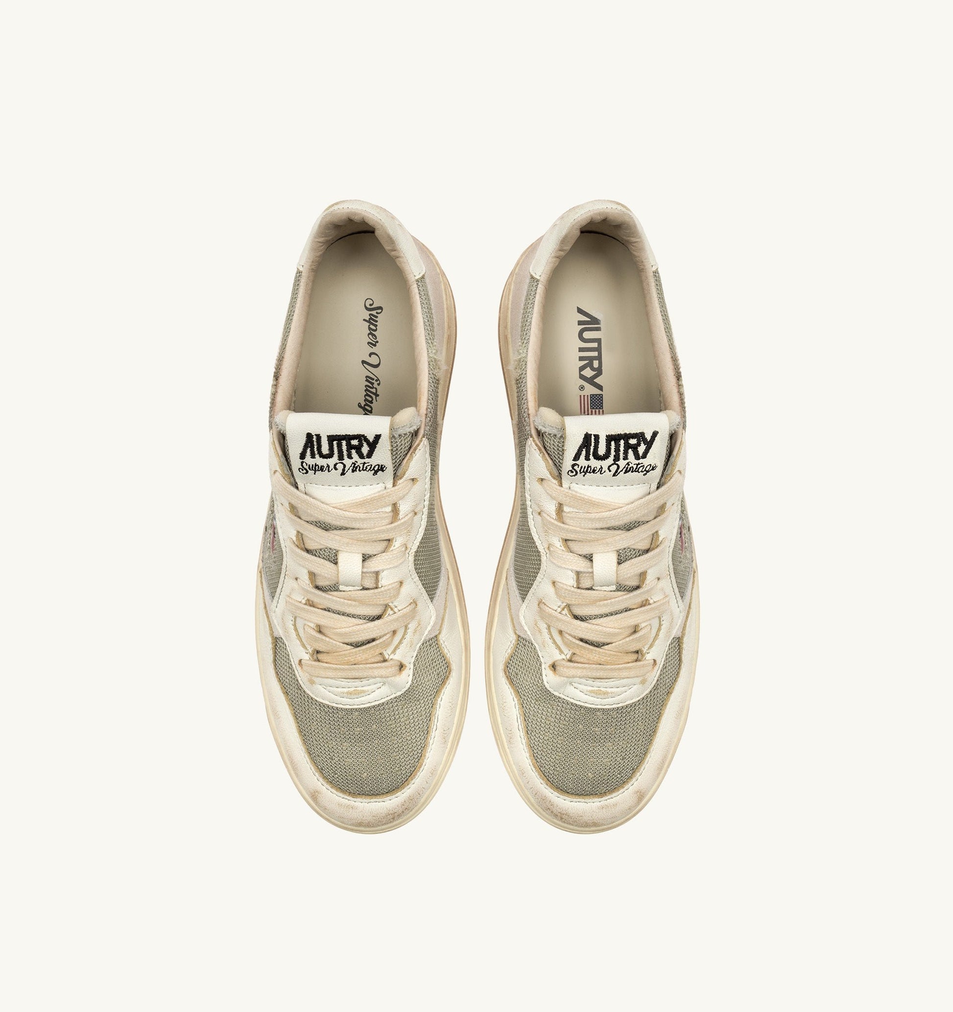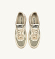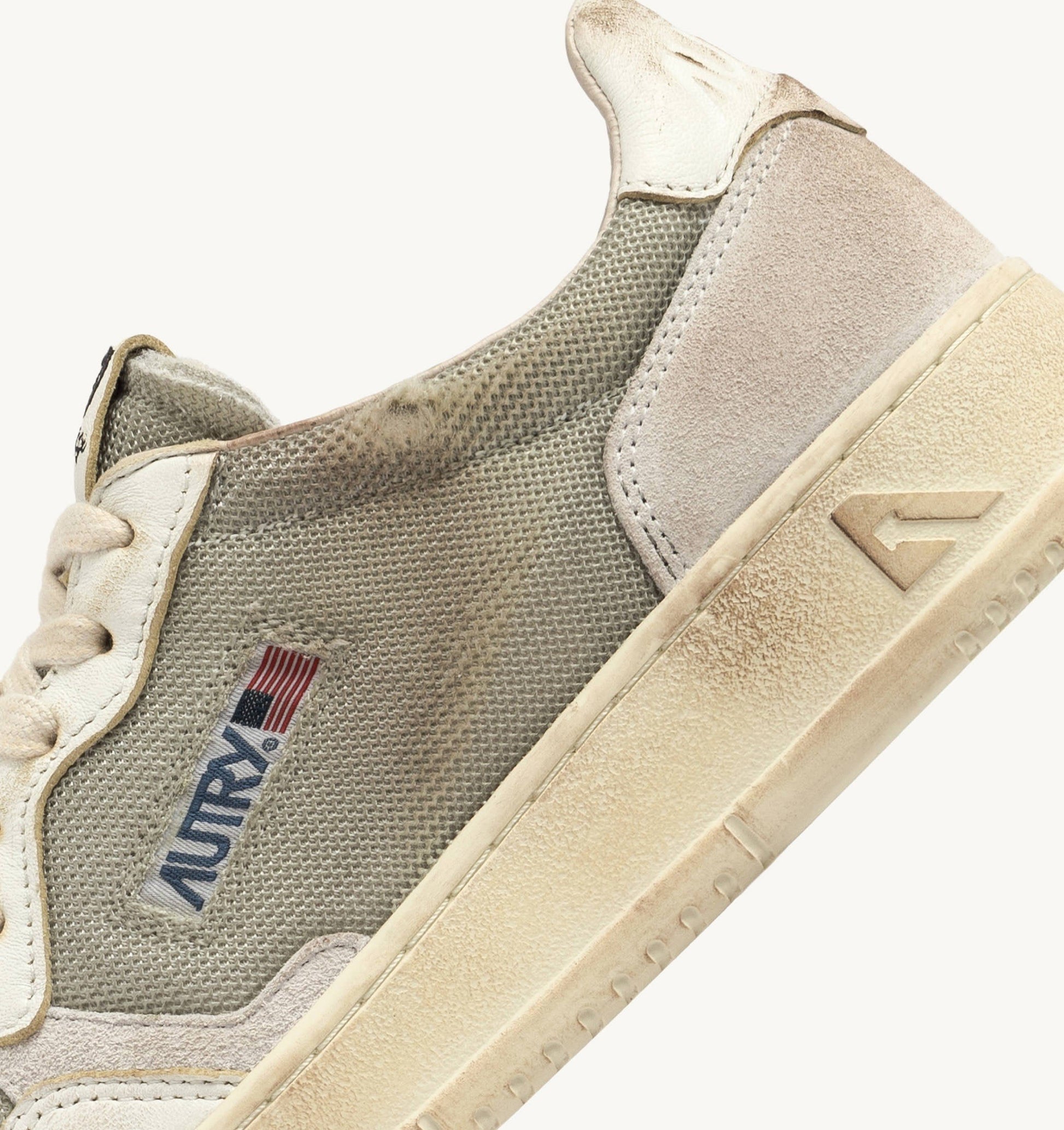 Cette basket femme est réalisée en mesh gris au look vieilli, avec des inserts en cuir de chèvre et en suede dans des tons blancs. L’empiècement latéral attire l’attention sur le logo emblématique Autry. Le traitement exclusif utilisé pour créer cet effet vintage est entièrement fabriqué en Italie.