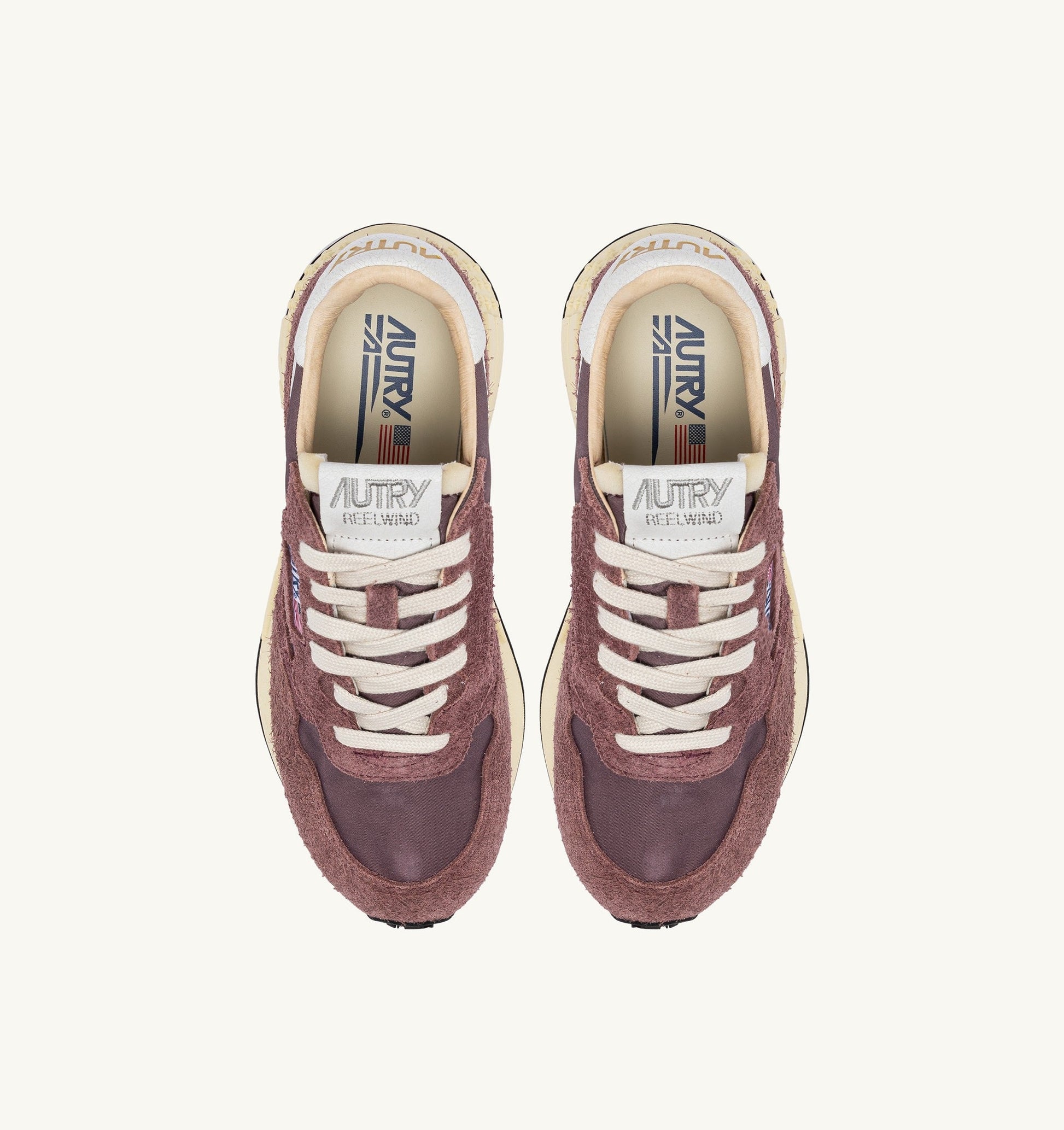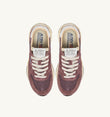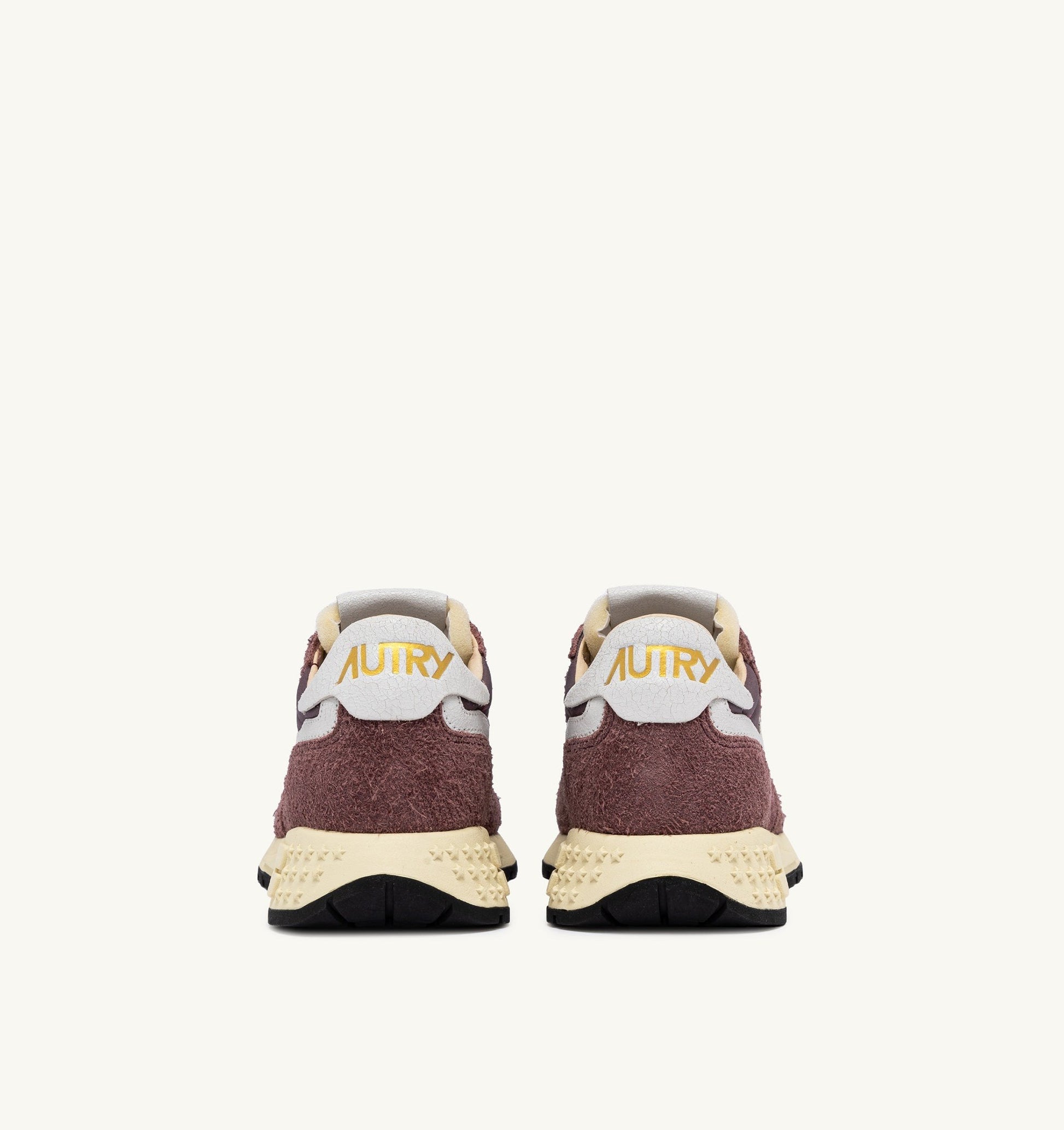 Innovante, légère et extrêmement flexible, la Reelwind est la sneakers Autry inspirée par le monde du running. Le modèle femme est réalisé dans un mélange de suede et nylon violet avec des applications latérales en cuir craquelé blanc.