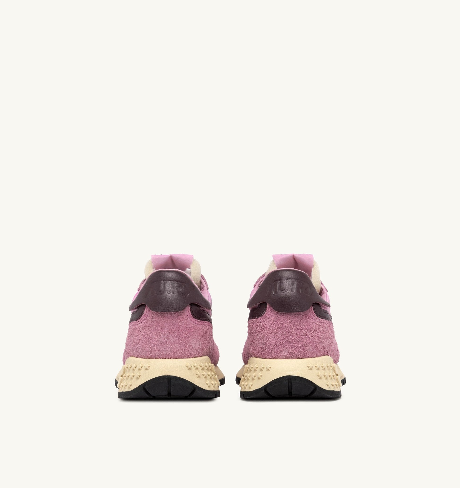 Ce modèle femme est confectionné dans un mélange de nylon et suède rose washed, avec des empiècements latéraux en cuir marron, alliant douceur et caractère.