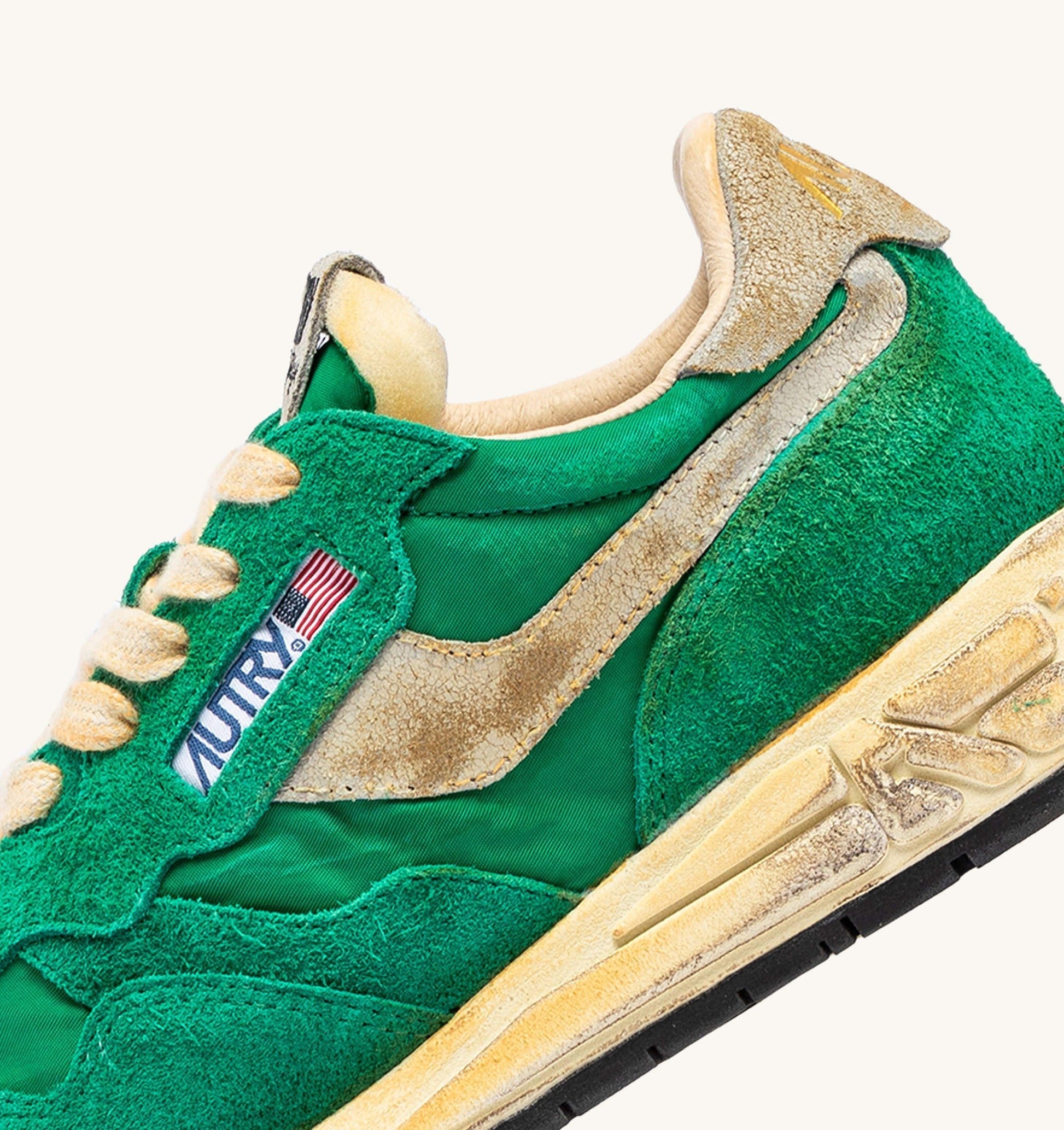 Innovante, légère et ultra-flexible, la Reelwind Super Vintage s’inspire de l’univers du running, dans une version sublimée par des traitements artisanaux exclusifs qui confèrent à chaque paire un look volontairement usé, irrégulier et unique, entièrement Made in Italy.