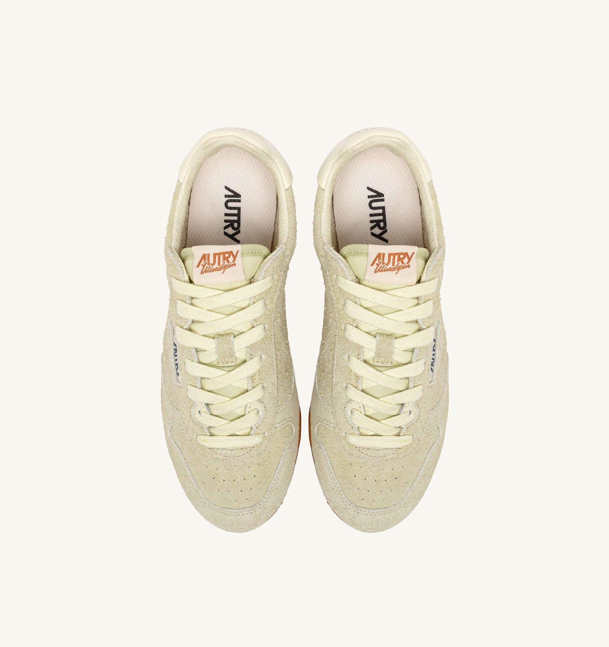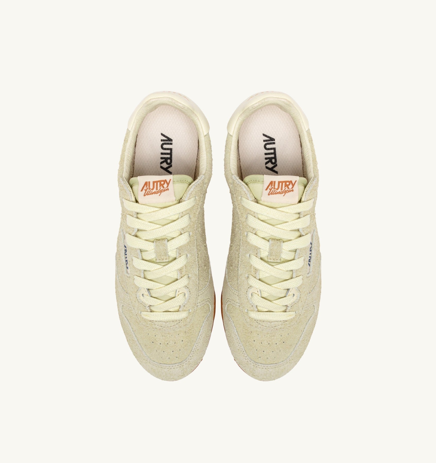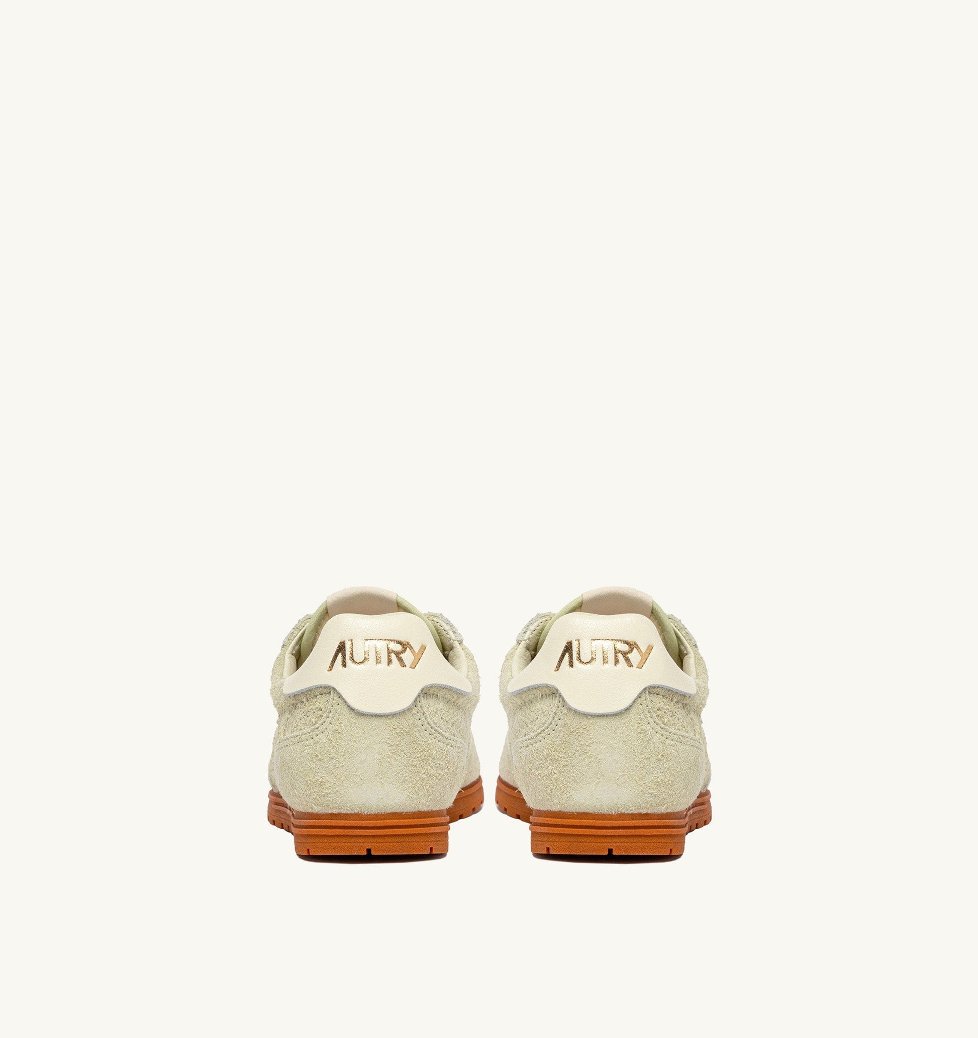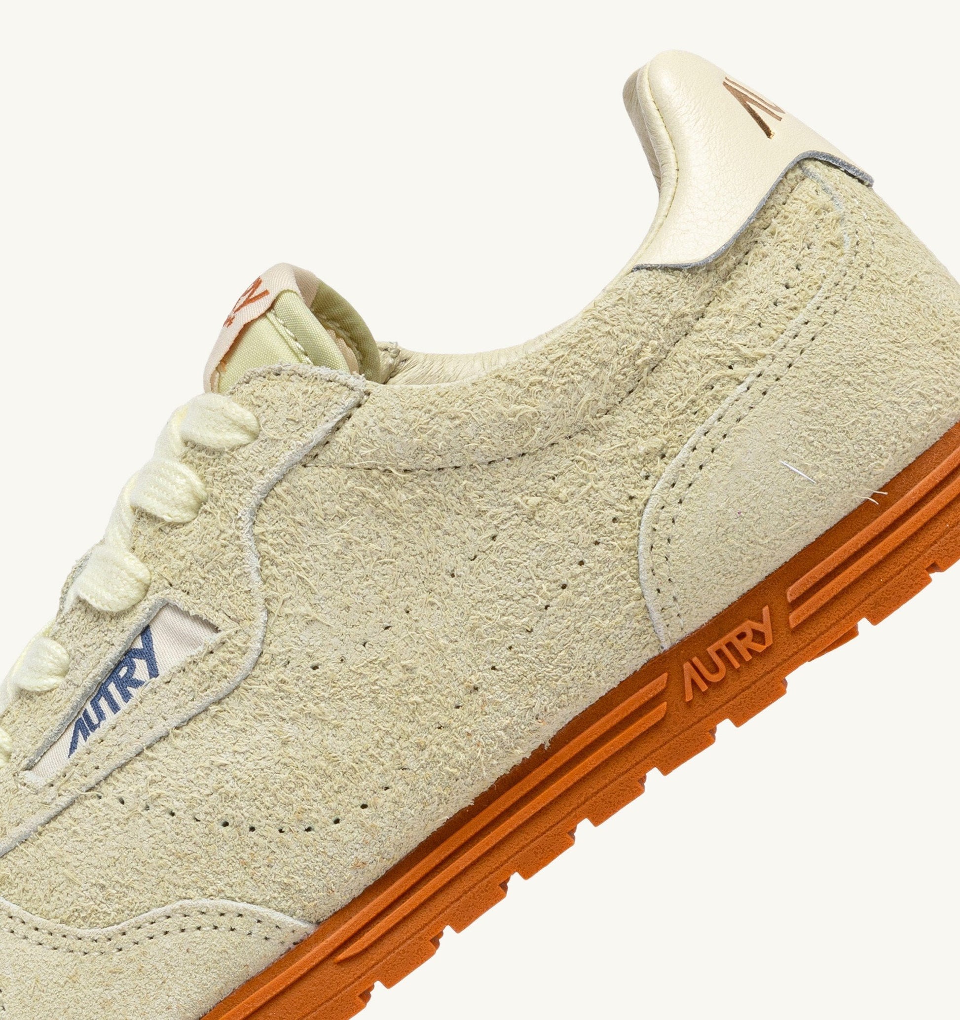 Conçue en cuir suédé doux à effet « used », la Windspin arbore une silhouette affinée. Son profil plat et dynamique incarne le mélange caractéristique du charme vintage et de la modernité propre à Autry. La semelle en caoutchouc ultra plate assure une excellente adhérence sur toutes les surfaces urbaines.