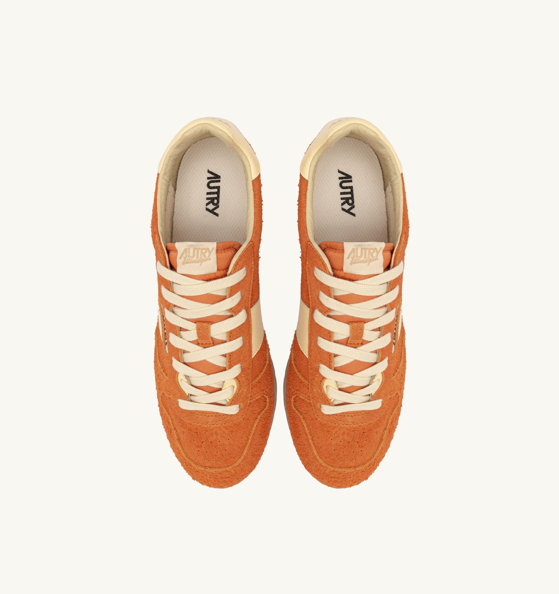 Conçue en doux cuir suédé effet « used », la Windspin présente une silhouette affinée. Son profil plat et dynamique incarne le mélange caractéristique du charme vintage et de la modernité propre à Autry. La semelle en caoutchouc ultra-plate garantit une excellente adhérence sur toutes les surfaces urbaines.